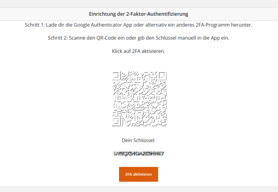 • 2-FA Einstellungen aktivieren