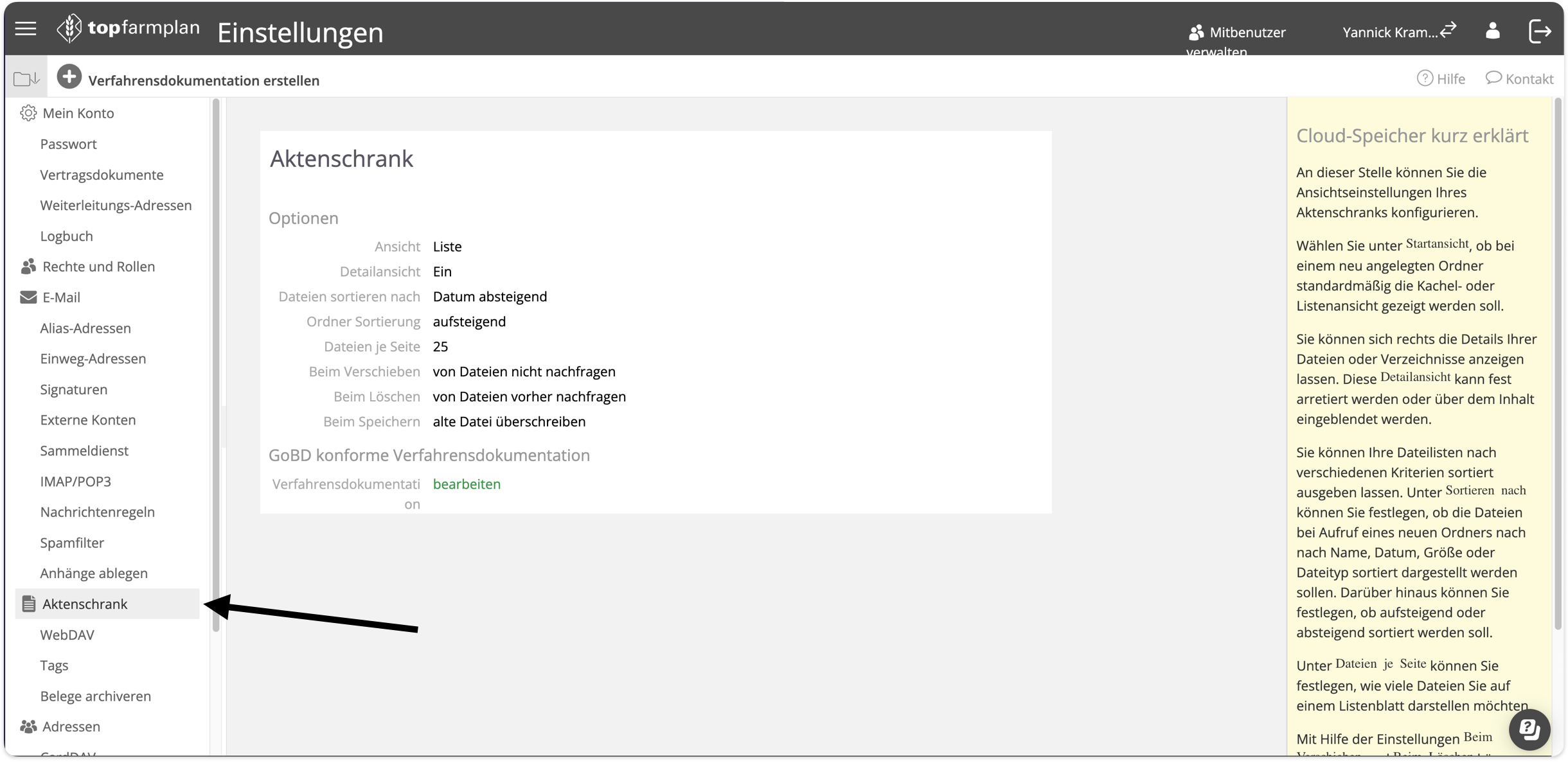 Einstellungsbereich | Akteschrank