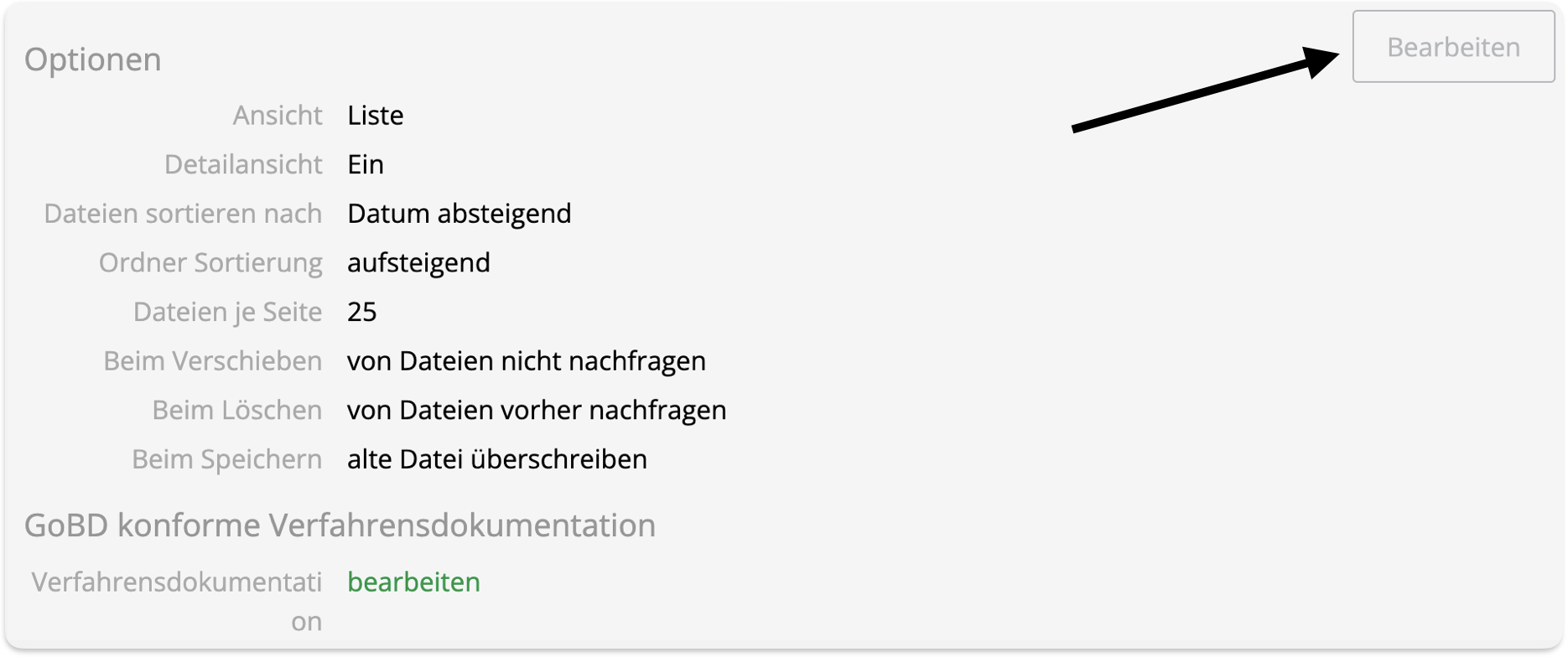Einstellungsbereich | Akteschrank