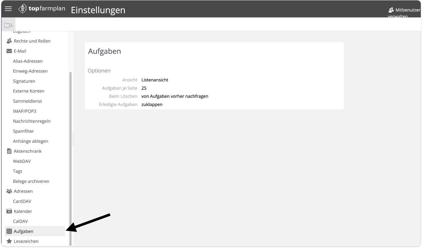 Einstellungsbereich | Aufgaben