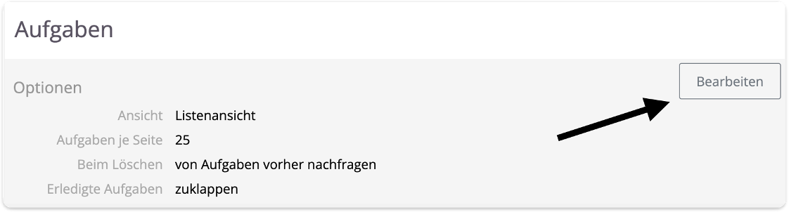 Einstellungsbereich | Aufgaben