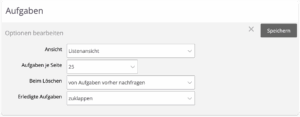 Einstellungsbereich | Aufgaben