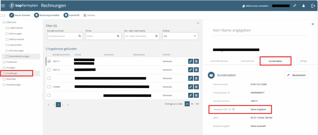 In top farmplan kannst Du die Leitweg-ID direkt beim Empfänger hinterlegen. So gehst Du vor: