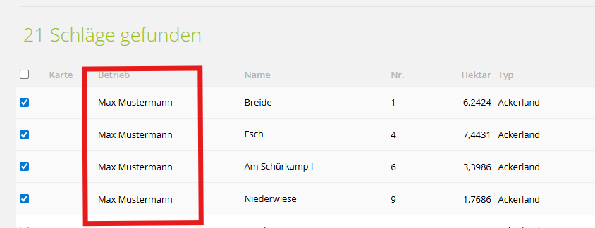 Schläge einem Betrieb zuweisen