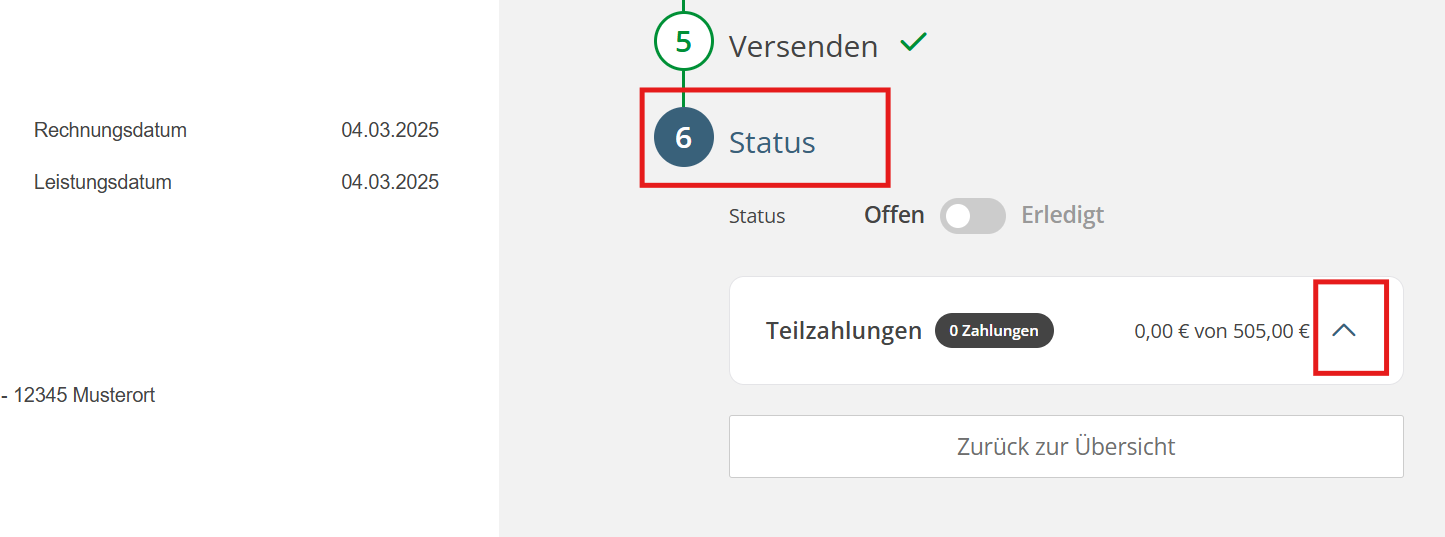 Teilzahlungen eintragen
