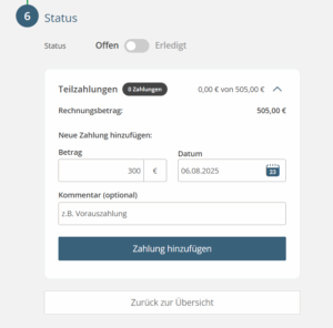 Teilzahlungen eintragen