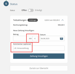 Teilzahlungen eintragen