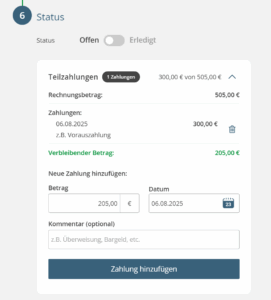 Teilzahlungen eintragen